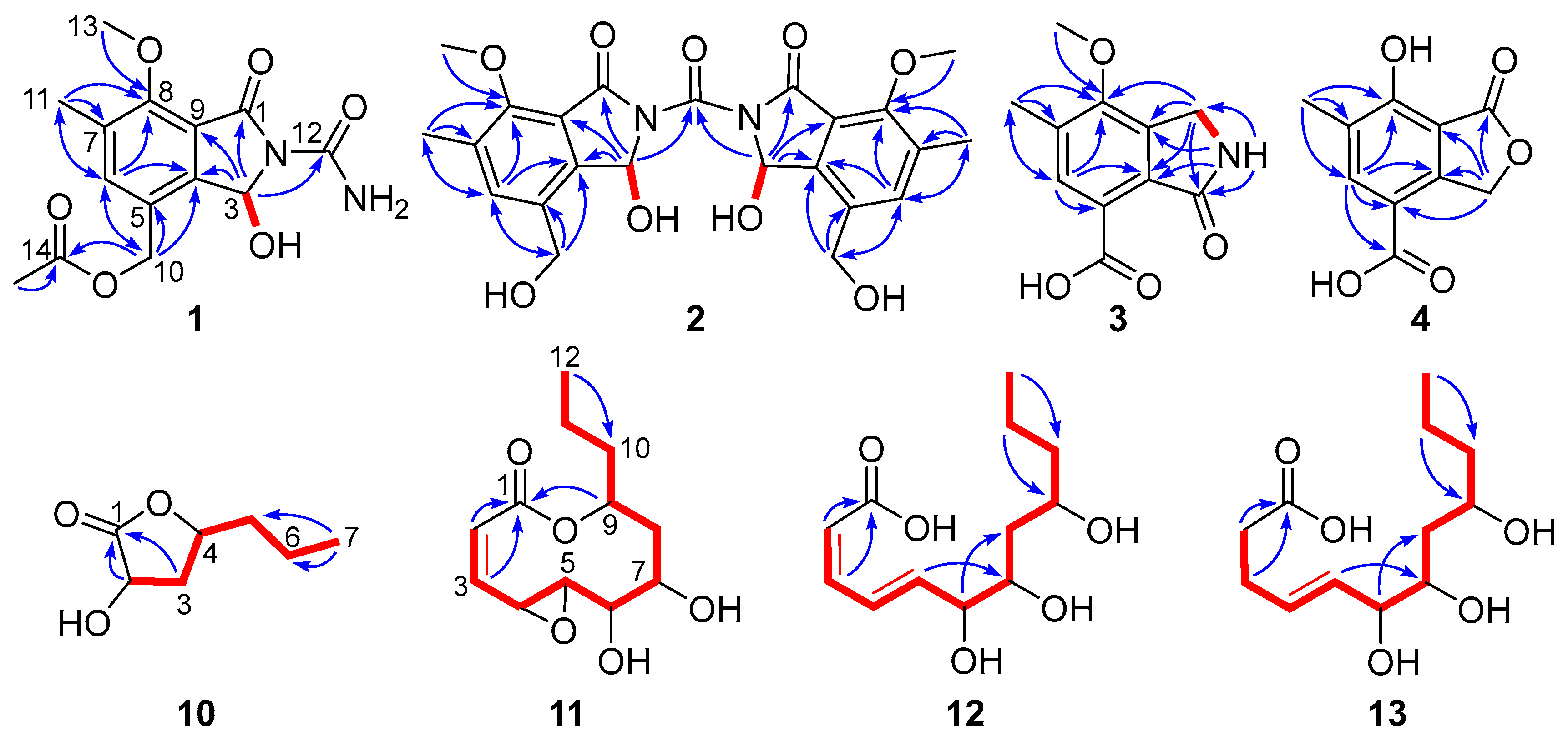 - Liu, Z.; Chen, Y.; Li, S.; Wang, Q.; Hu, C.; Liu, H.; Zhang, W. Bioactive metabolites from the deep-sea-derived fungus Diaporthe longicolla FS429. Mar. Drugs 2020, 18, 381. [Google Scholar] [CrossRef] [PubMed]
