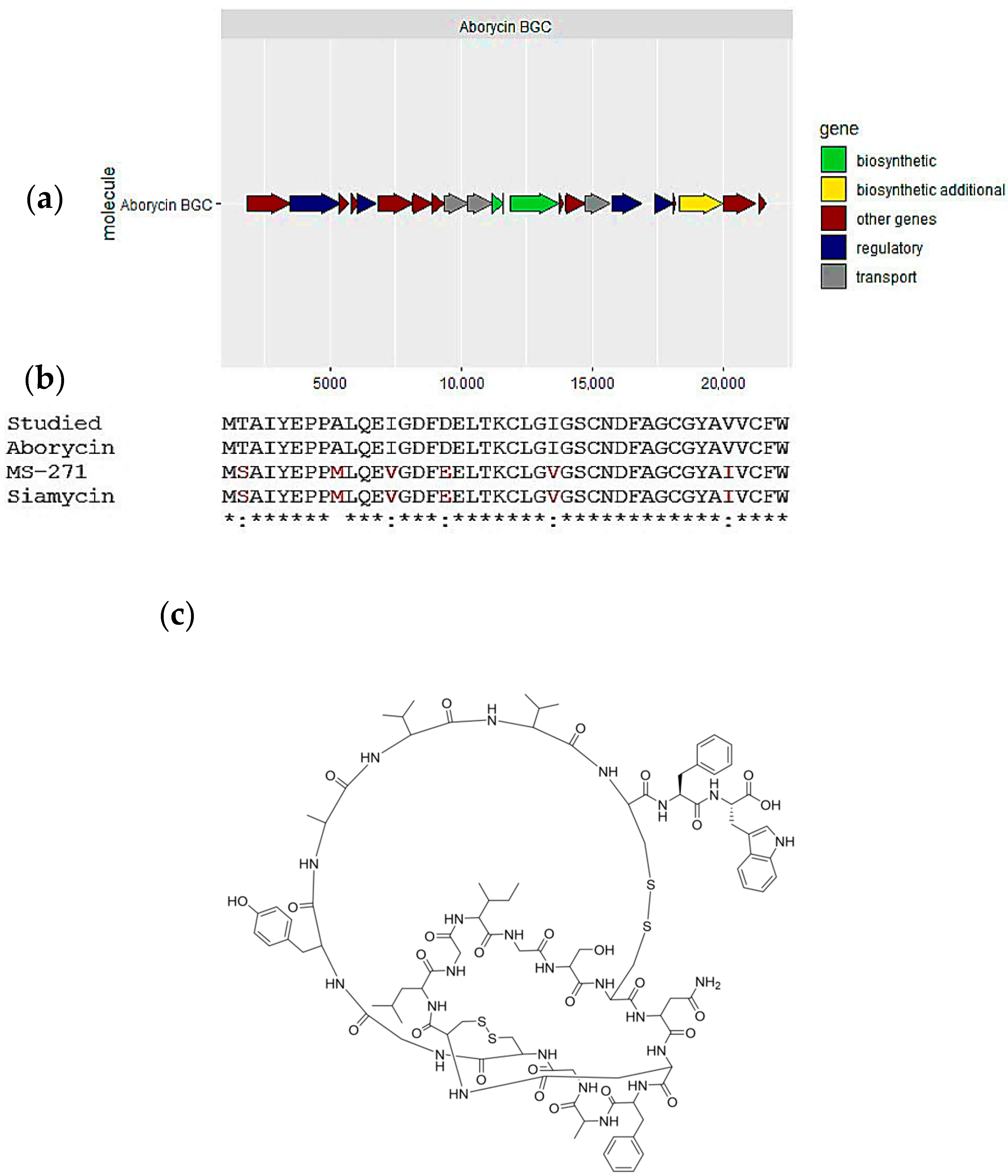 - Shao, M.; Ma, J.; Li, Q.; Ju, J. Identification of the Anti-Infective Aborycin Biosynthetic Gene Cluster from Deep-Sea-Derived Streptomyces sp. SCSIO ZS0098 Enables Production in a Heterologous Host. Mar. Drugs 2019, 17, 127. [Google Scholar] [CrossRef]