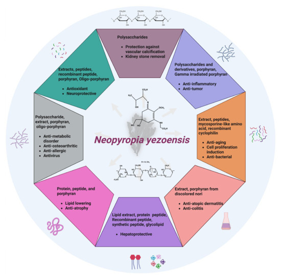 N. yezoensis porphyran through modulation of the gut microbiota was also investigated. Studies have indicated that protein hydrolysates and peptides derived from