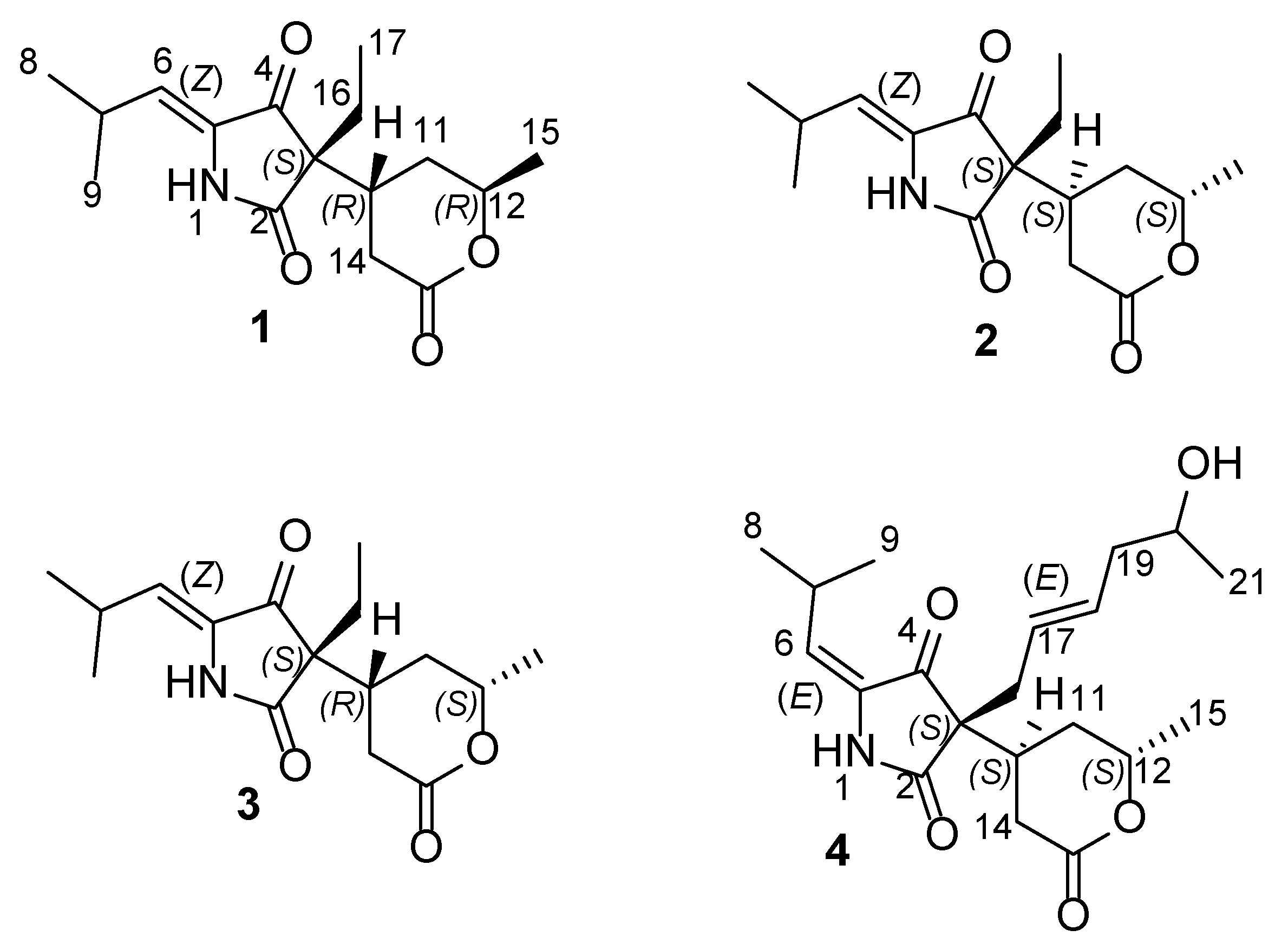 - Jiang, M.H.; Chen, S.H.; Li, J.; Liu, L. The biological and chemical diversity of tetramic acid compounds from marine-derived microorganisms. Mar. Drugs 2020, 18, 114. [Google Scholar] [CrossRef]