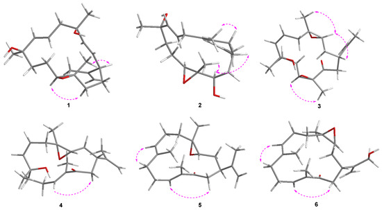 1H NMR data of compounds 1–6 at 600 MHz in CDCl3.