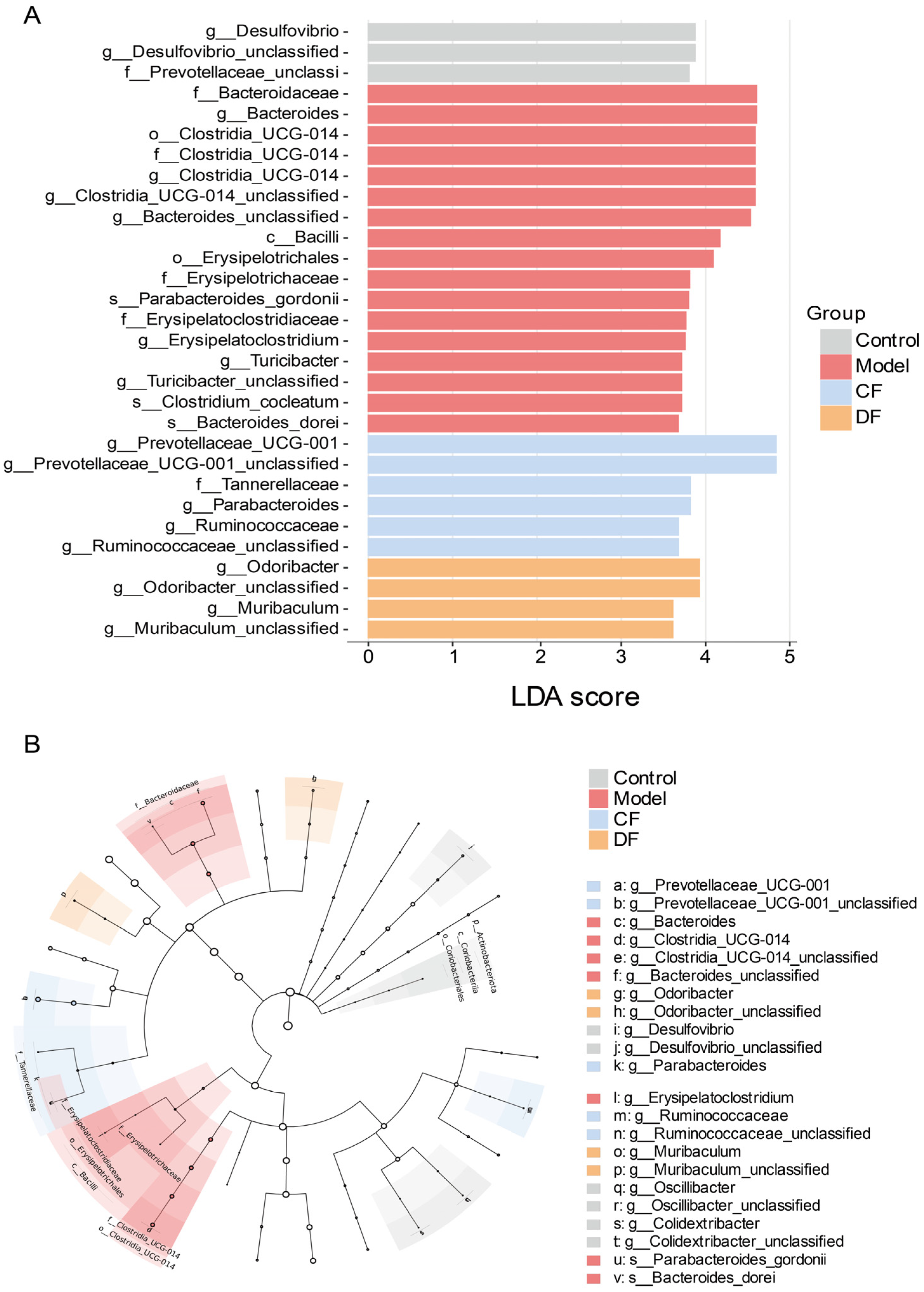 2.10. Effects of Fucoidans Treatment on Taxonomic Levels in DSS-Induced UC Mice