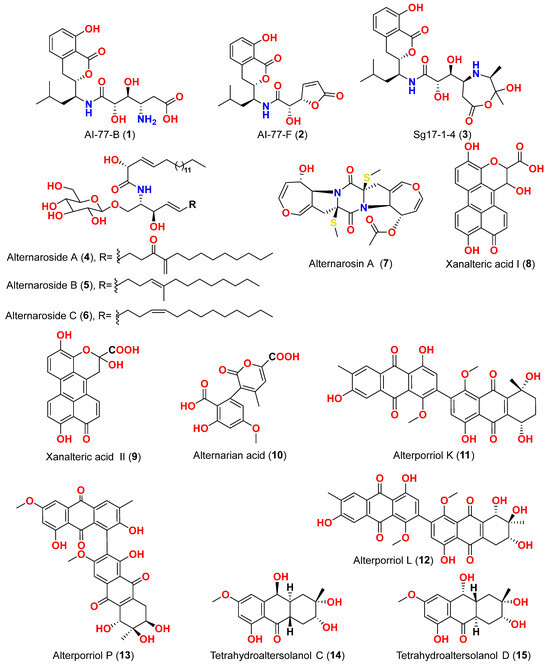- Lou, J.; Fu, L.; Peng, Y.; Zhou, L. Metabolites from Alternaria fungi and their bioactivities. Molecules 2013, 18, 5891–5935. [Google Scholar] [CrossRef]