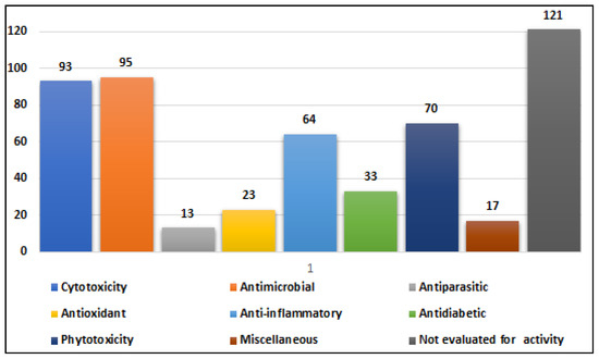 Alternaria species are ubiquitous in the environment, with spores commonly present in soil and air worldwide [5]. In addition to their ecological presence, exposure to Alternaria spores can trigger allergic reactions and asthma in sensitive individuals. Members of this genus are also important sources of phytotoxins, which can be harmful to their host organisms but exhibit diverse bioactivities [6]. While numerous reports document marine-derived Alternaria species, comprehensive, up-to-date information on their secondary metabolites and associated biological activities remains limited. Accordingly, this study provides an extensive overview of 319 secondary metabolites produced by 67 marine-derived Alternaria species studied between 2003 and 2023, with their biological activities serving as the basis for classification.