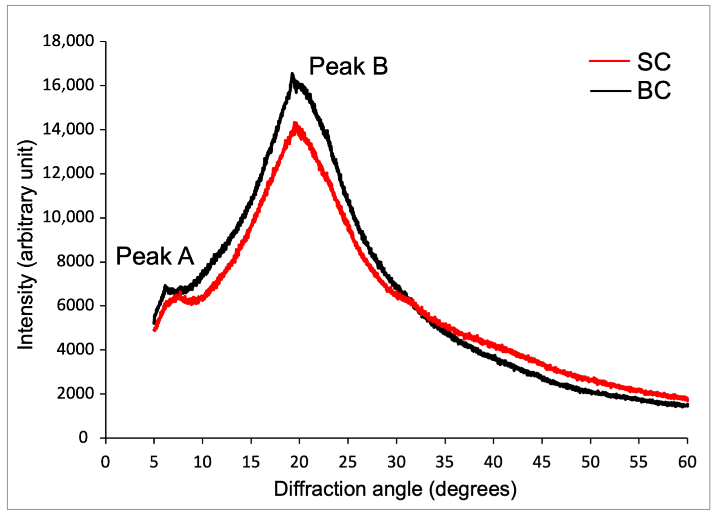 2.6.3. X-Ray Diffraction (XRD) Analysis of Collagen