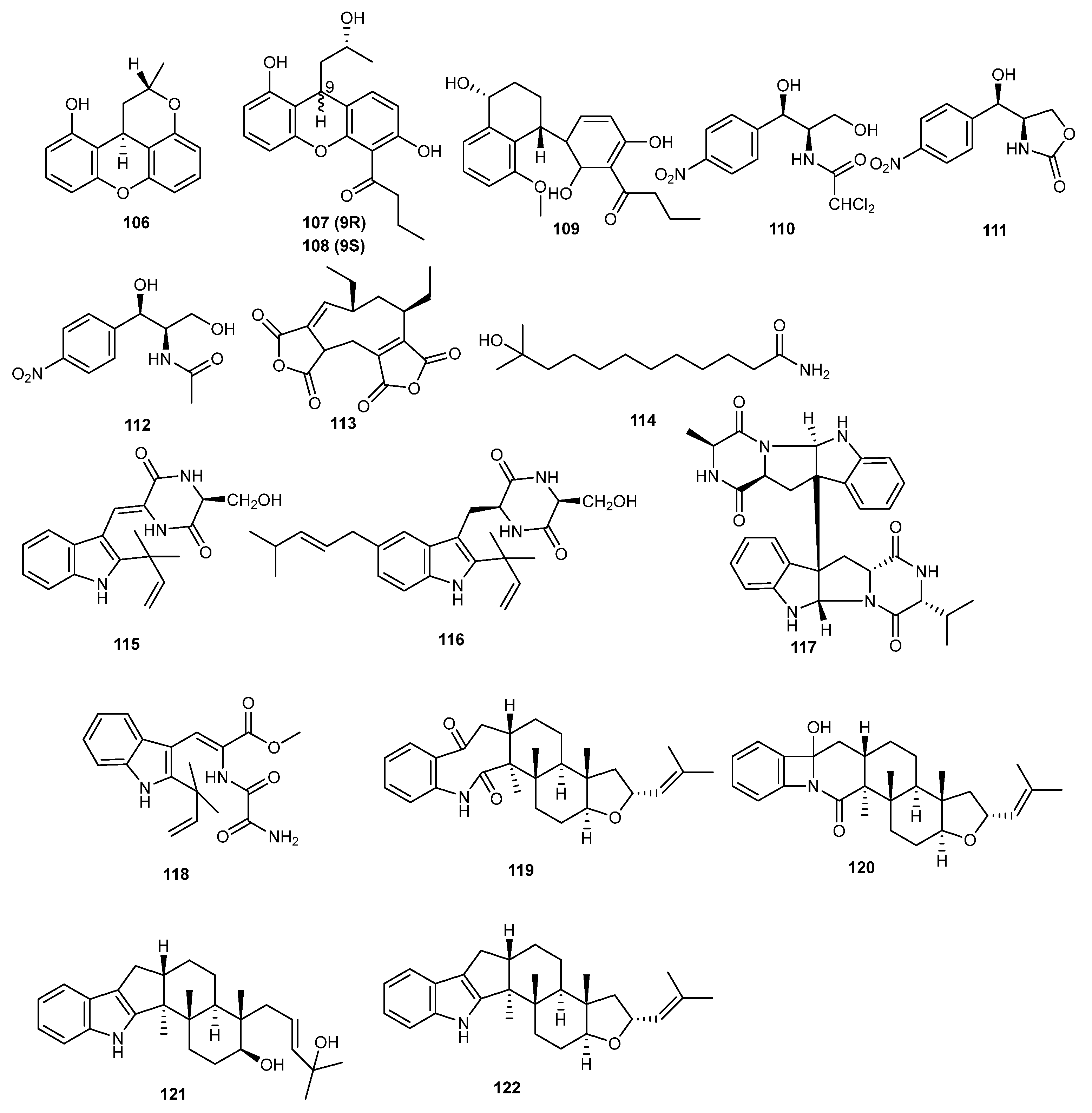 | 109 | penicixanthenes D | Pencillium sp. JY246 | Culex quinquefasciatus larvae | [73] |