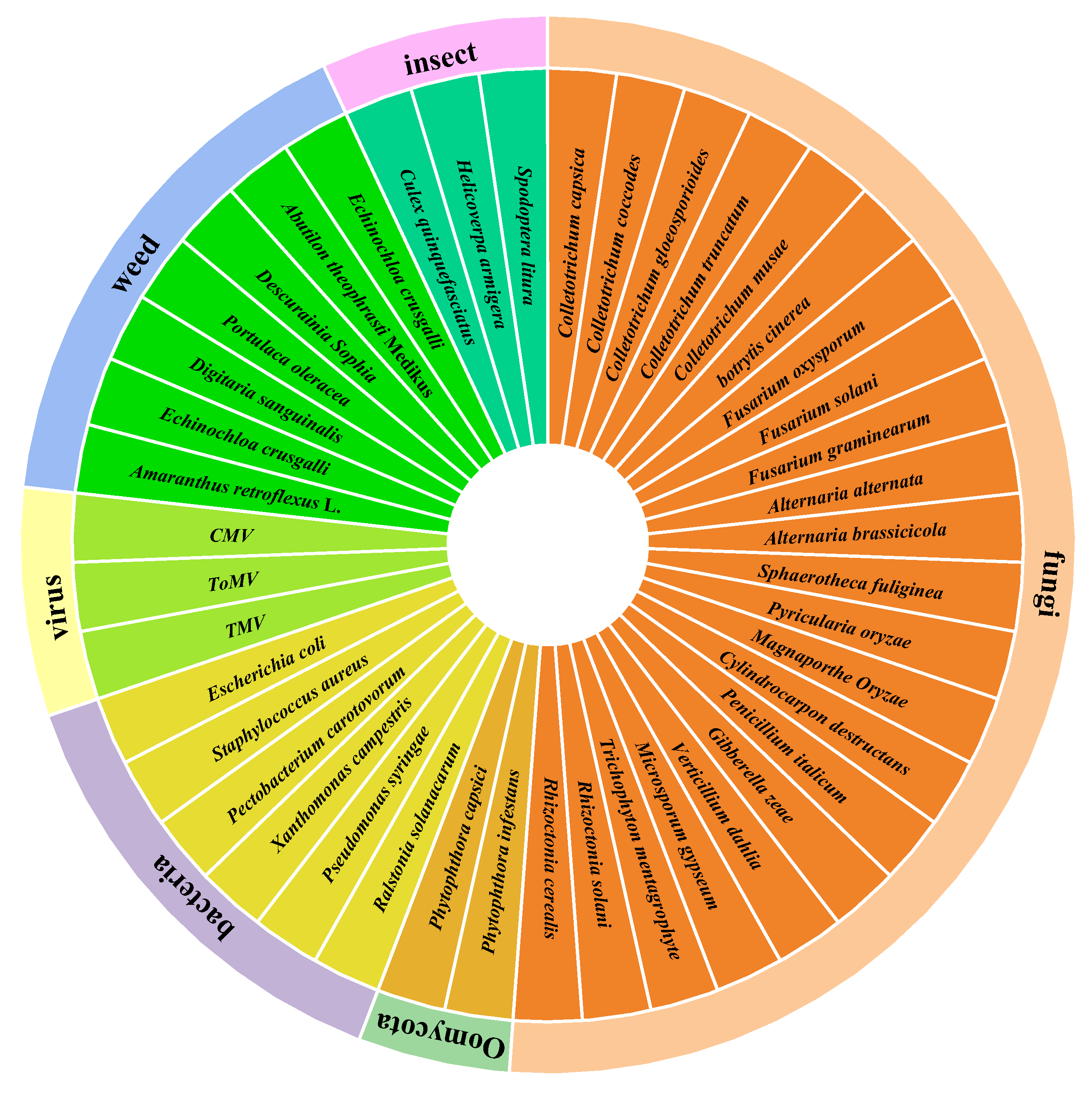 - Peng, Y.; Li, S.J.; Yan, J.; Tang, Y.; Cheng, J.P.; Gao, A.J.; Yao, X.; Ruan, J.J.; Xu, B.L. Research Progress on Phytopathogenic Fungi and Their Role as Biocontrol Agents. Front. Microbiol. 2021, 12, 670135. [Google Scholar] [CrossRef] [PubMed]