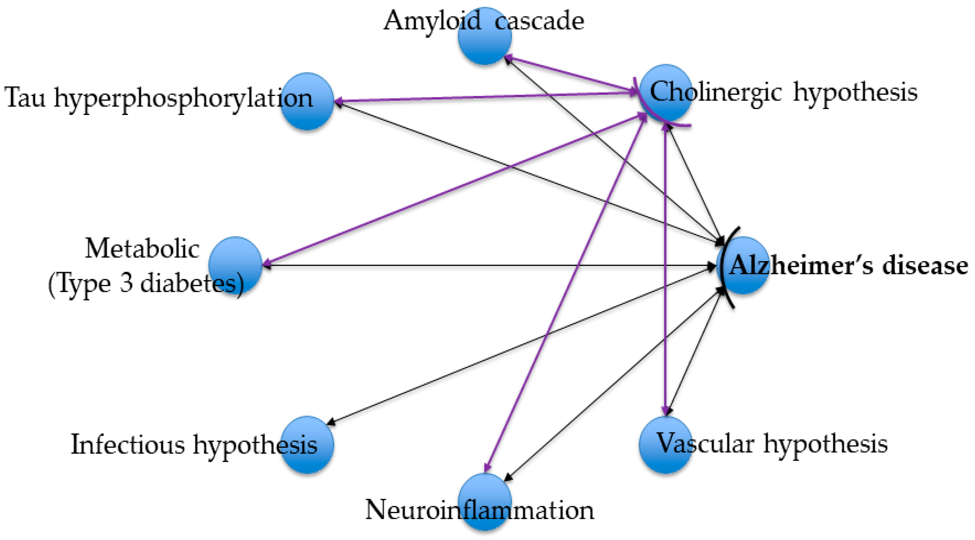 - Hampel, H.; Mesulam, M.M.; Cuello, A.C.; Khachaturian, A.S.; Vergallo, A.; Farlow, M.R.; Snyder, P.J.; Giacobini, E.; Khachaturian, Z.S. Revisiting the cholinergic hypothesis in Alzheimer’s disease: Emerging evidence from translational and clinical research. J. Prev. Alzheimers Dis. 2019, 6, 2–15. [Google Scholar] [CrossRef]