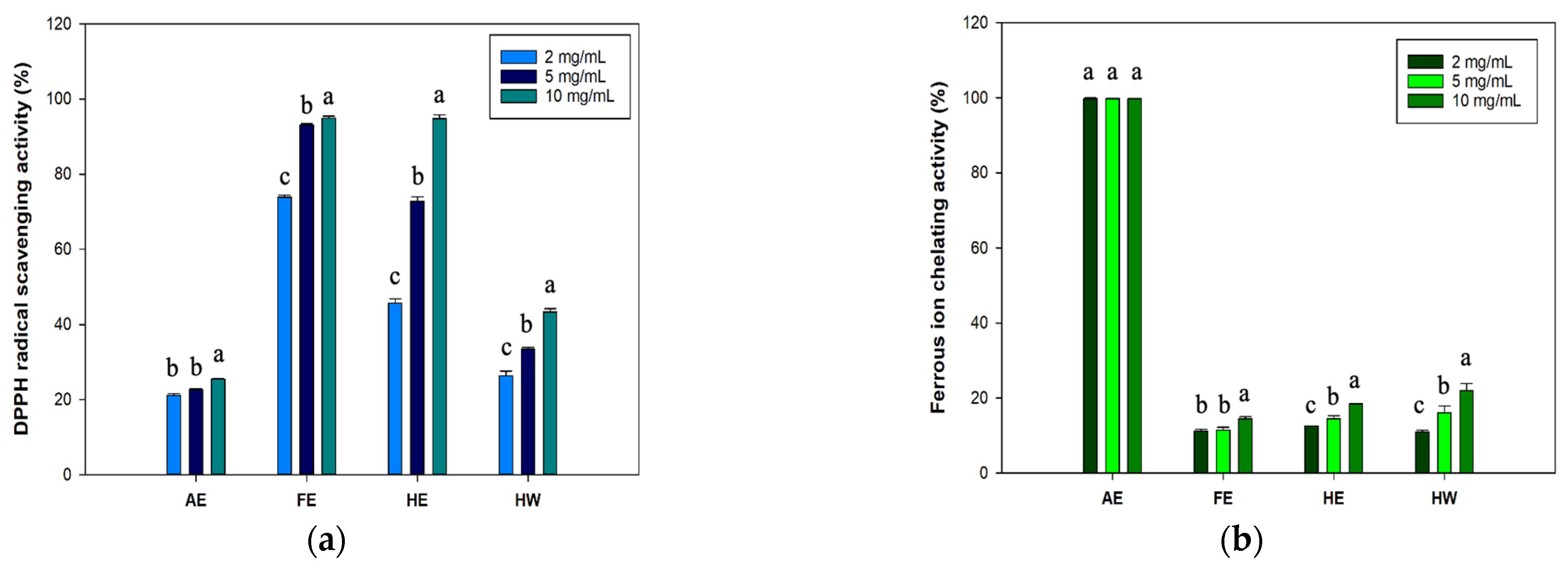 - Wang, T.; Jónsdóttir, R.; Ólafsdóttir, G. Total phenolic compounds, radical scavenging and metal chelation of extracts from Icelandic seaweeds. Food Chem. 2009, 116, 240–248. [Google Scholar] [CrossRef]