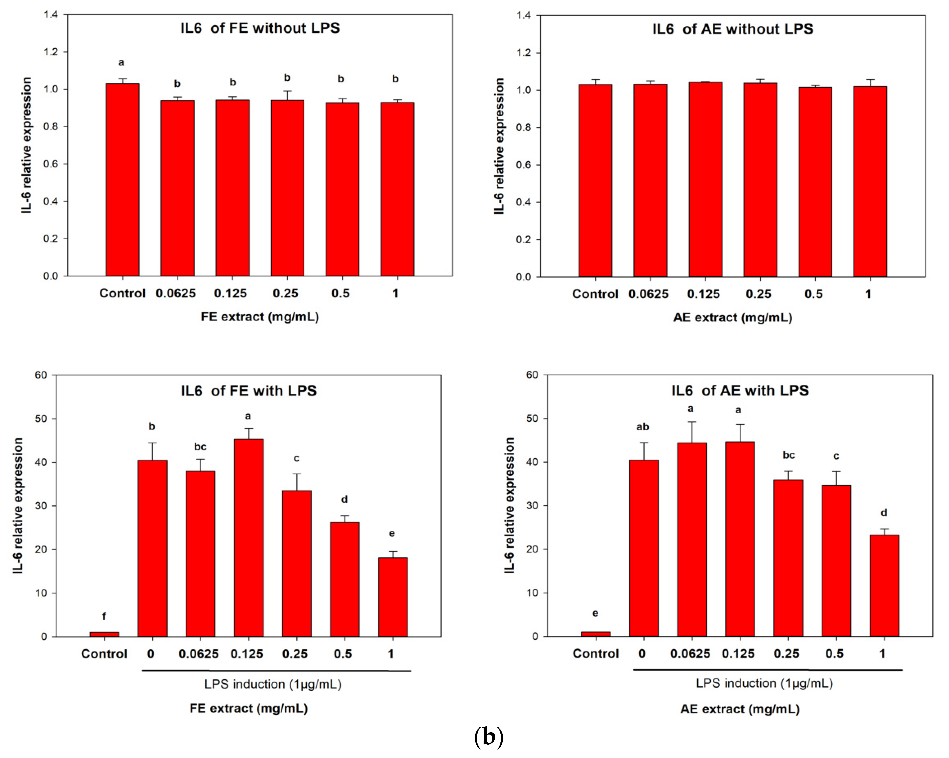 2.2. Anti-Inflammatory Activity of B. leptopoda Extracts in Macrophages