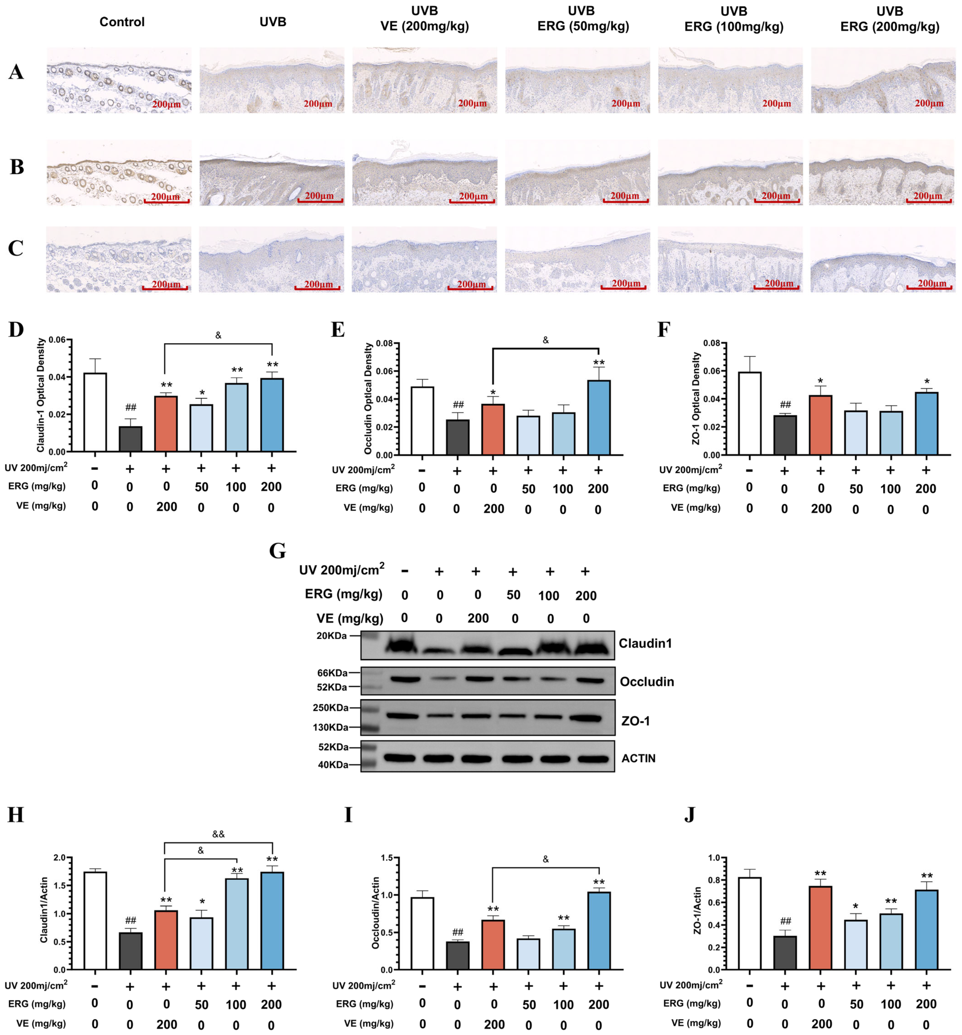 2.4. ERG Alleviates UVB-Induced Epidermal Damage and Barrier Dysfunction in Mice