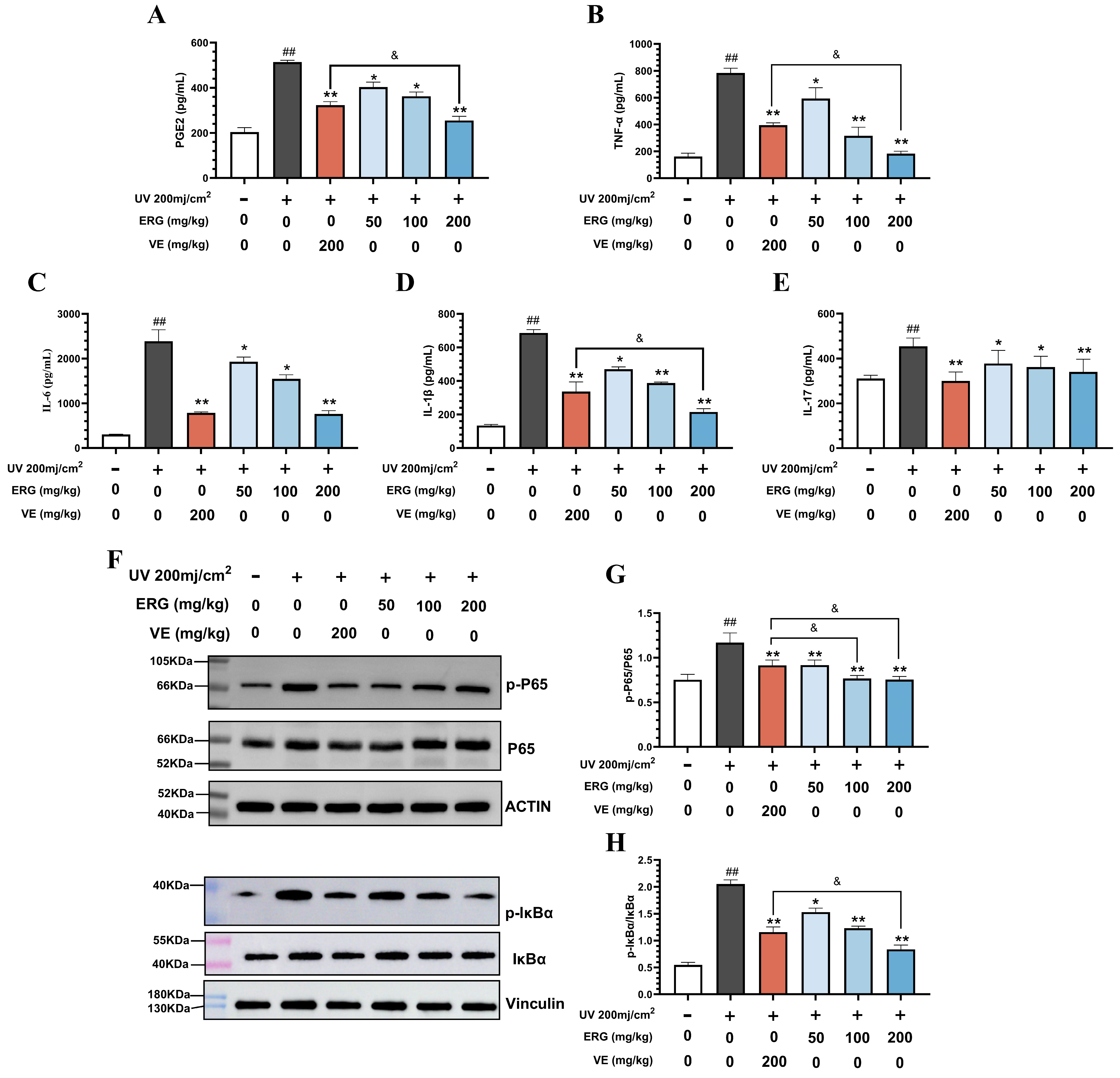 2.5. ERG Suppresses UVB-Induced Skin Inflammation in Mice by Inhibiting the NF-κB Pathway