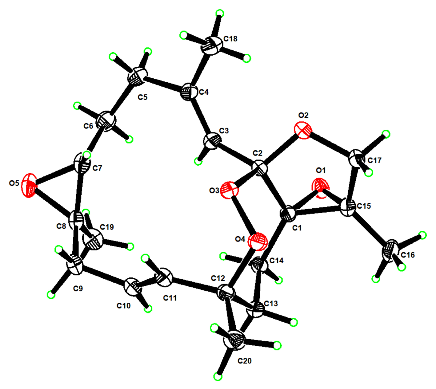 Compound 1: colorless crystals (mp 164–169 °C), orthorhombic, C20H28O5, Mr = 348.42, crystal size 0.2 × 0.02 × 0.02 mm3, space group P212121, a = 11.3335(5) Å, b = 11.5001(5) Å, c = 14.1664(6) Å, V = 1846.40(14) Å3, Z = 4, ρcalc = 1.253 g/cm3, F (000) = 752.0, Independent reflections: 3807 [Rint = 0.0775, Rsigma = 0.0371]. R1 = 0.0390, wR2 = 0.0961 reflections with I ≥ 2σ (I), R1 = 0.0528, wR2 = 0.1050 for all unique data, Flack parameter: −0.08(10). The crystals of 1 were recrystallized from MeOH. These above crystal data were deposited in the Cambridge Crystallographic Data Centre (CCDC) and assigned the accession number (CCDC 2428505).