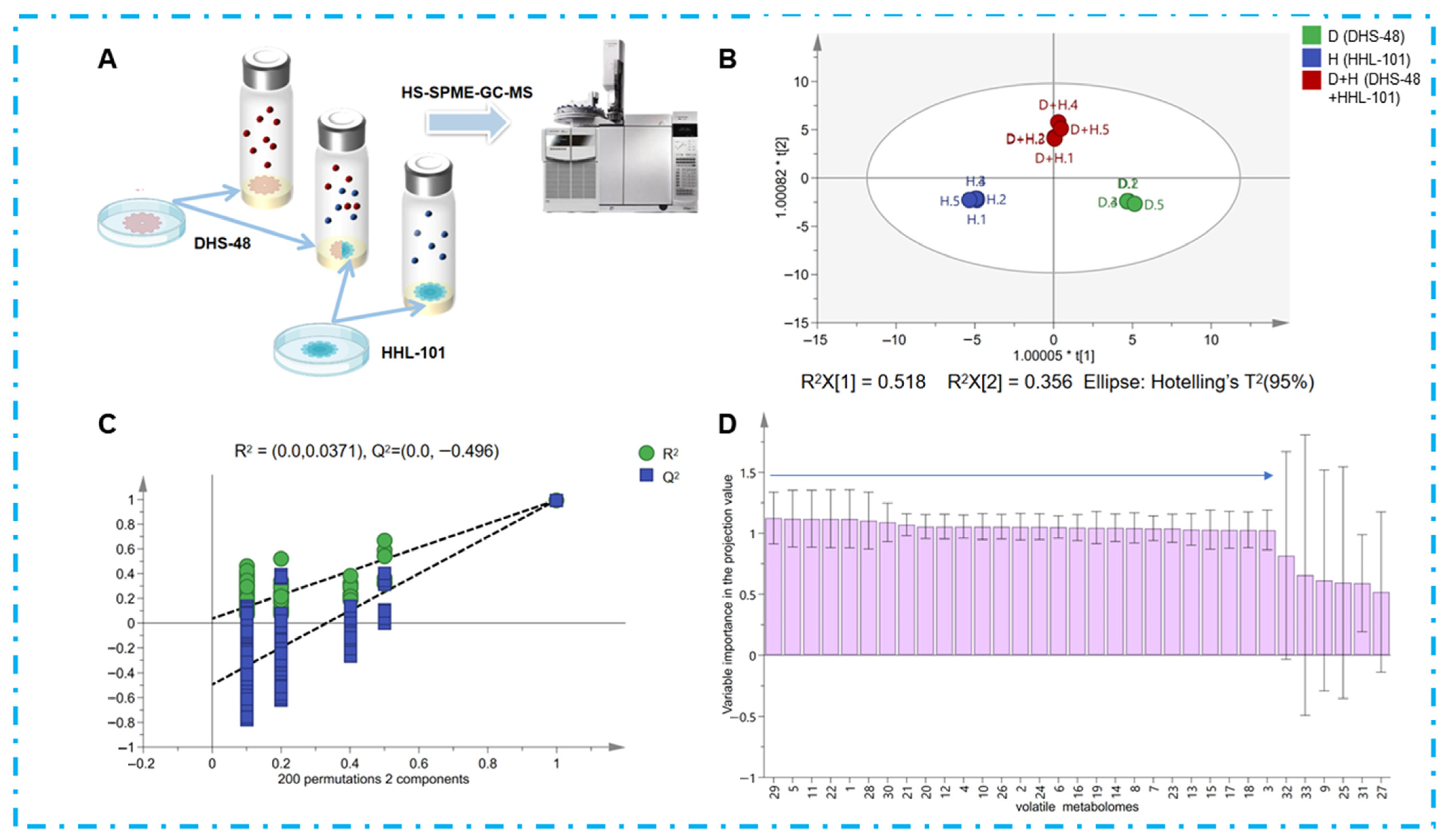 3.5. Experimental Conditions for DHS-48 and HHL-101 Mono- and Co-Cultures Analyzed Using HS-SPME-GC-MS