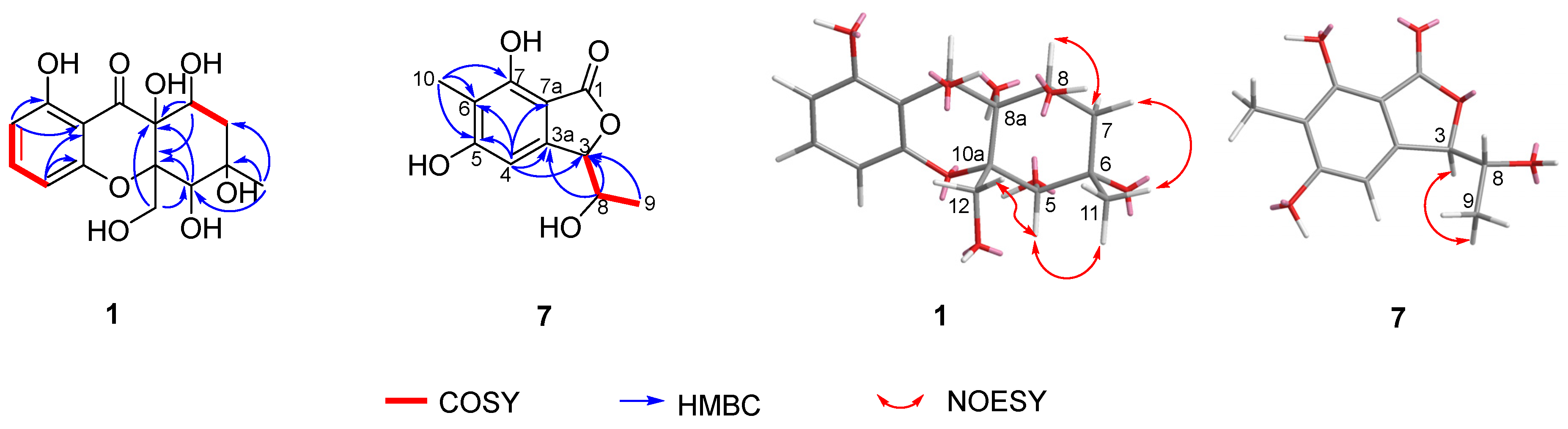 - Dong, J.Y.; Song, H.C.; Li, J.H.; Tang, Y.S.; Sun, R.; Wang, L.; Zhou, Y.P.; Wang, L.M.; Shen, K.Z.; Wang, C.R.; et al. Ymf 1029A-E, preussomerin analogues from the fresh-water-derived fungus YMF 1.01029. J. Nat. Prod. 2008, 71, 952–956. [Google Scholar] [CrossRef]