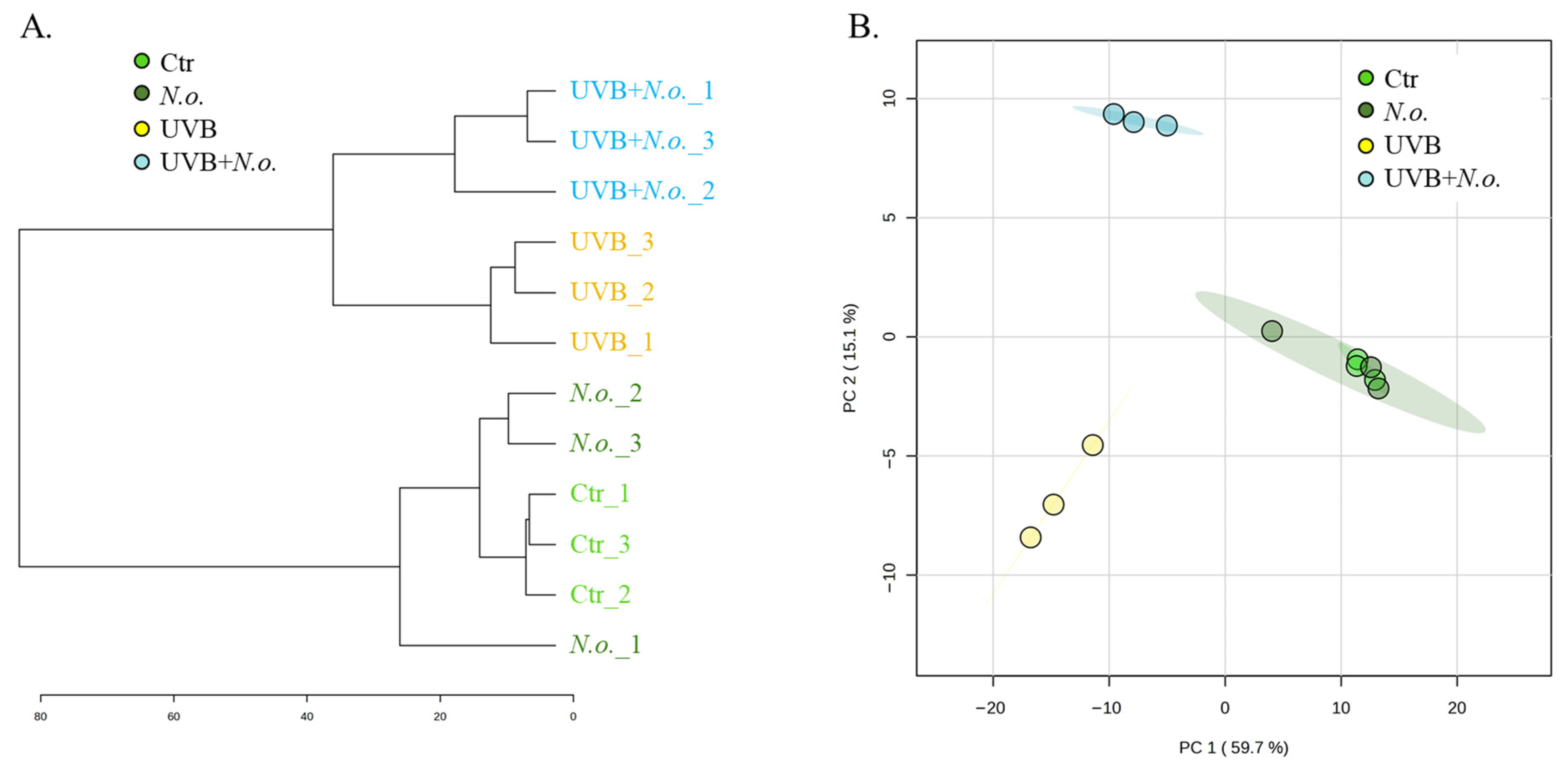 - Stasiewicz, A.; Conde, T.; Gęgotek, A.; Domingues, M.R.; Domingues, P.; Skrzydlewska, E. Prevention of UVB Induced Metabolic Changes in Epidermal Cells by Lipid Extract from Microalgae Nannochloropsis oceanica. Int. J. Mol. Sci. 2023, 24, 11302. [Google Scholar] [CrossRef] [PubMed]