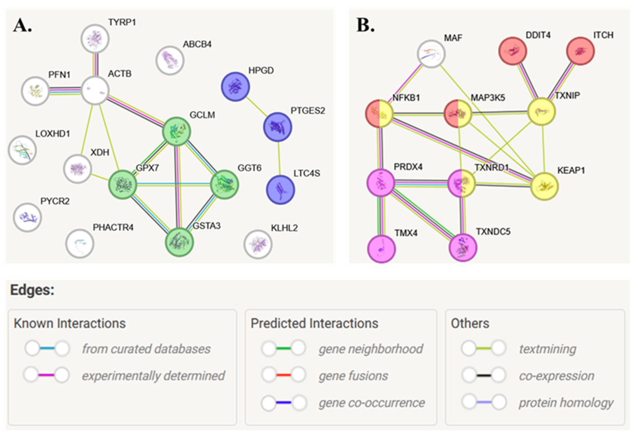 - Szklarczyk, D.; Gable, A.L.; Lyon, D.; Junge, A.; Wyder, S.; Huerta-Cepas, J.; Simonovic, M.; Doncheva, N.T.; Morris, J.H.; Bork, P.; et al. STRING V11: Protein-Protein Association Networks with Increased Coverage, Supporting Functional Discovery in Genome-Wide Experimental Datasets. Nucleic Acids Res. 2019, 47, D607–D613. [Google Scholar] [CrossRef] [PubMed]