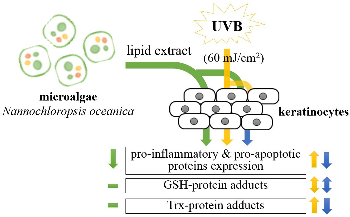 Gęgotek A, Domingues MR, Domingues P, Skrzydlewska E. The Effect of Lipid Extract of Nannochloropsis oceanica Marine Microalgae on Glutathione and Thioredoxin-Dependent Antioxidant Systems in UVB-Irradiated Keratinocytes. Marine Drugs. 2025; 23(12):454. https://doi.org/10.3390/md23120454