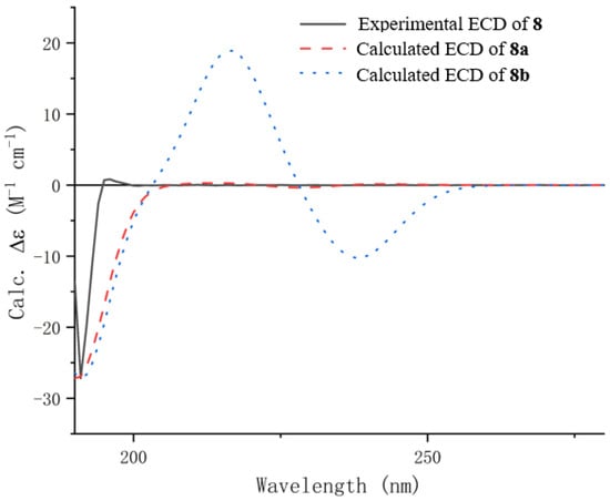Experimental and calculated ECD spectra of compound 8.
