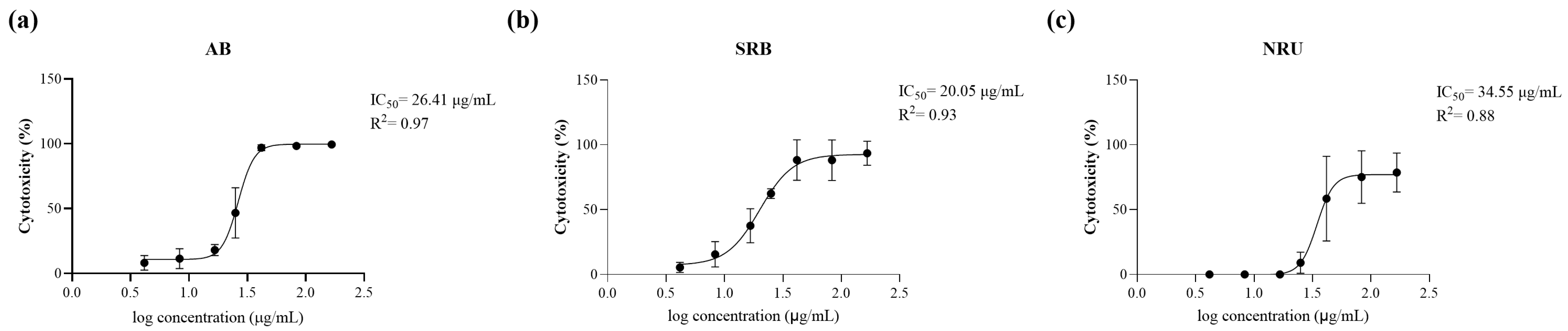 2.1. Preliminary Cytotoxicity Screening of Algae Extracts