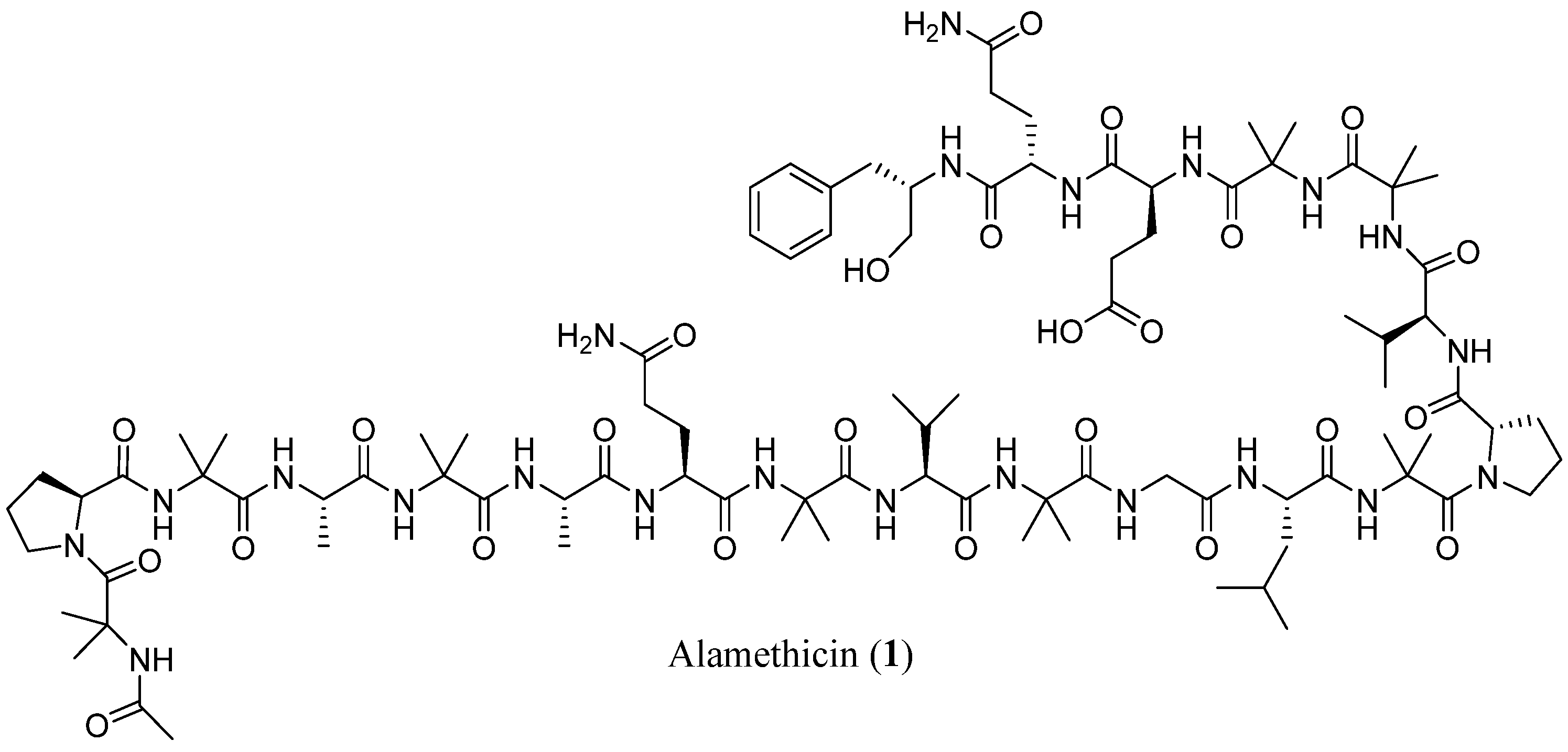 - Chugh, J.K.; Wallace, B.A. Peptaibols: Models for Ion Channels. Biochem. Soc. Trans. 2001, 29, 565–570. [Google Scholar] [CrossRef]