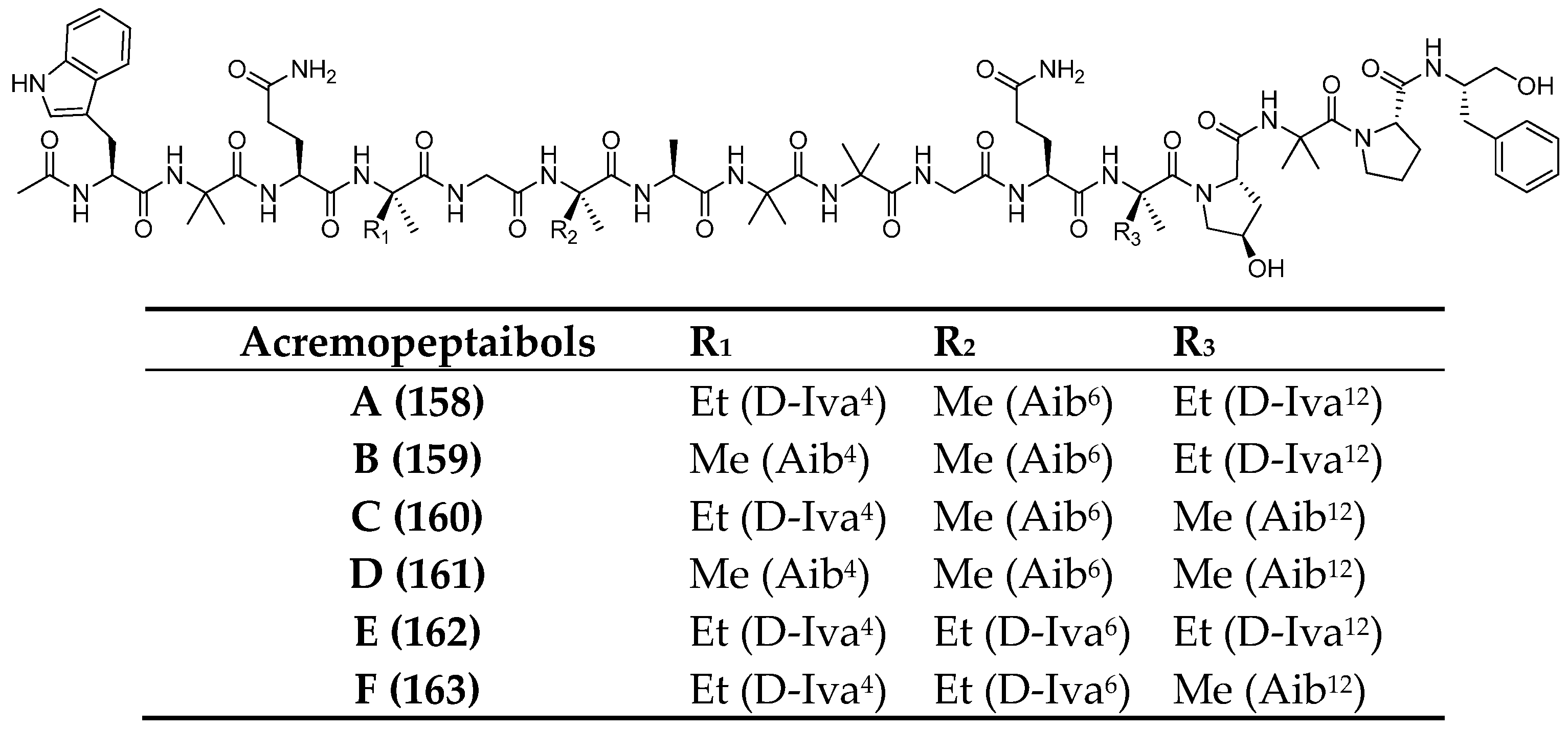 5.3. Peptaibols in Marine Acremonium Species