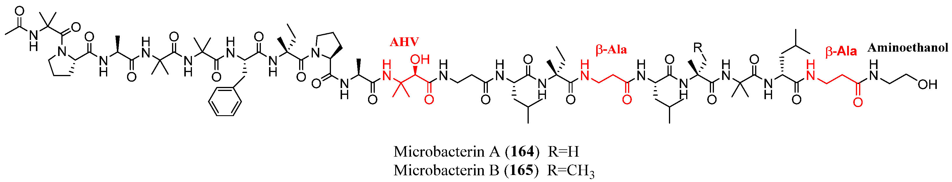 - Liu, D.; Lin, H.; Proksch, P.; Tang, X.; Shao, Z.; Lin, W. Microbacterins A and B, New Peptaibols from the Deep Sea Actinomycete Microbacterium Sediminis sp. Nov. YLB-01(T). Org. Lett. 2015, 17, 1220–1223. [Google Scholar] [CrossRef]
