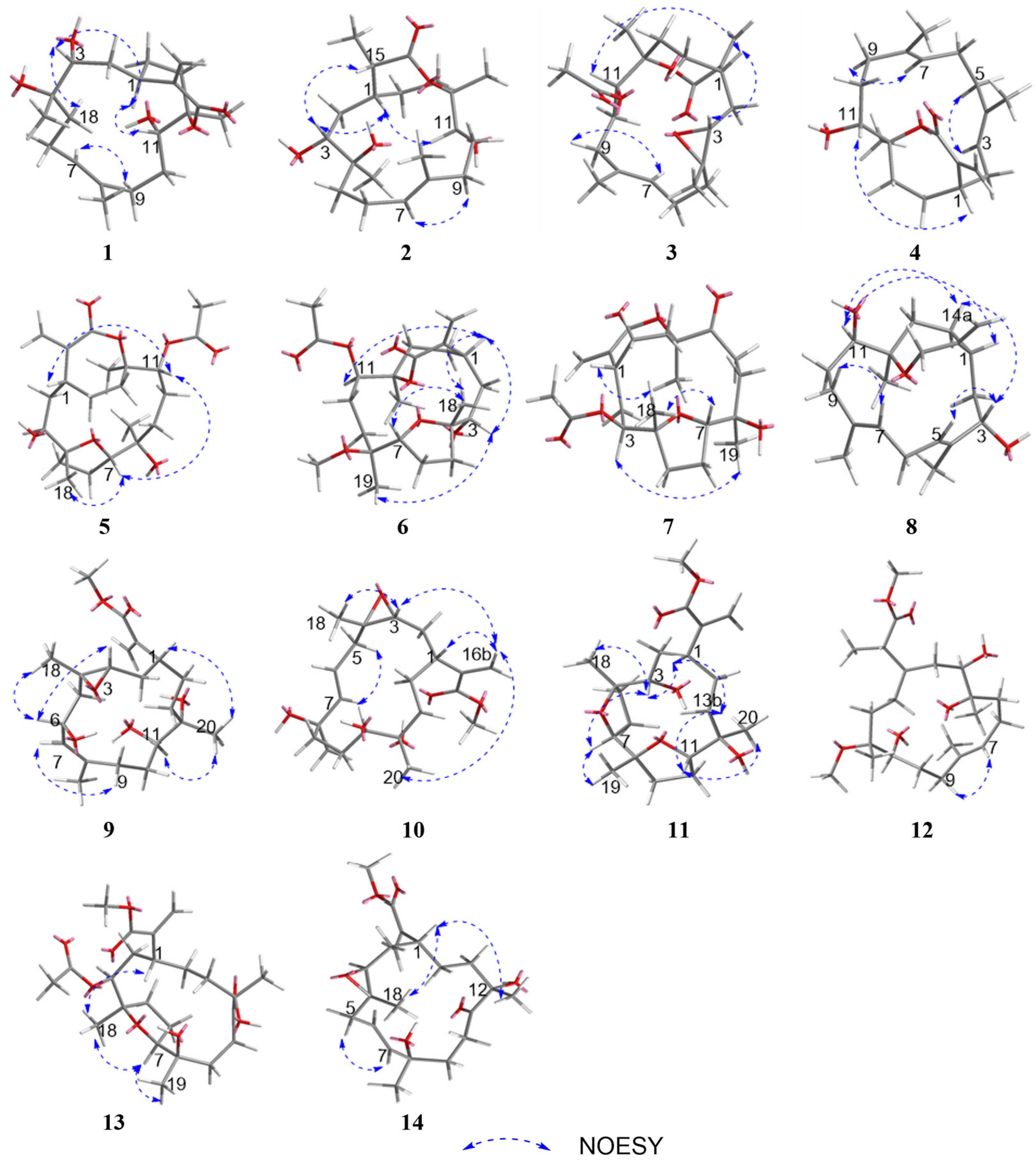 - Yang, B.; Zhou, X.; Huang, H.; Yang, X.-W.; Liu, J.; Lin, X.; Li, X.; Peng, Y.; Liu, Y. New Cembrane Diterpenoids from a Hainan Soft Coral Sinularia sp. Mar. Drugs 2012, 10, 2023–2032. [Google Scholar] [CrossRef]