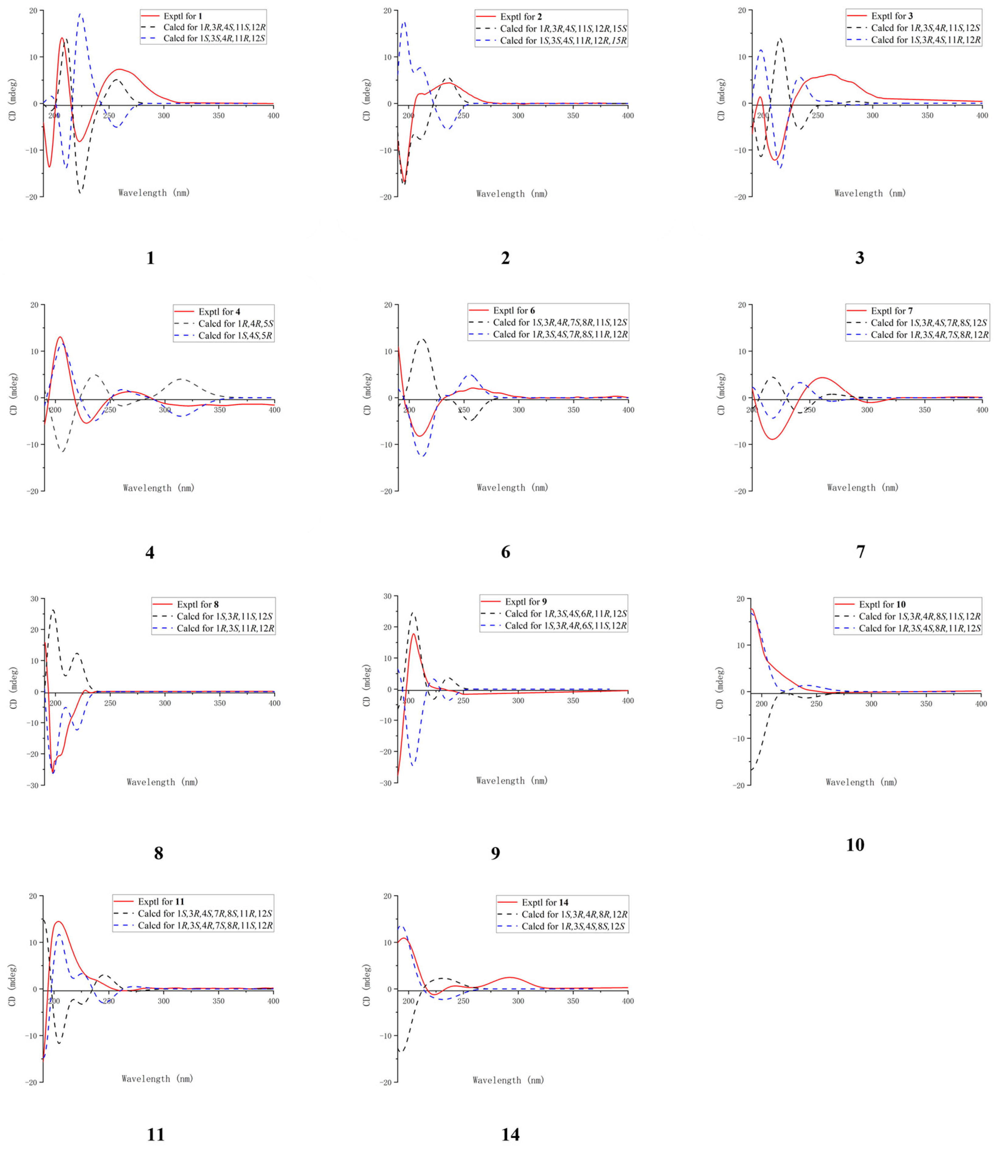 - Chao, C.-H.; Lin, K.-H.; Huang, C.-Y.; Hwang, T.-L.; Dai, C.-F.; Huang, H.-C.; Sheu, J.-H. Computationally Assisted Structural Elucidation of Cembranoids from the Soft Coral Sarcophyton tortuosum. Mar. Drugs 2022, 20, 297. [Google Scholar] [CrossRef]