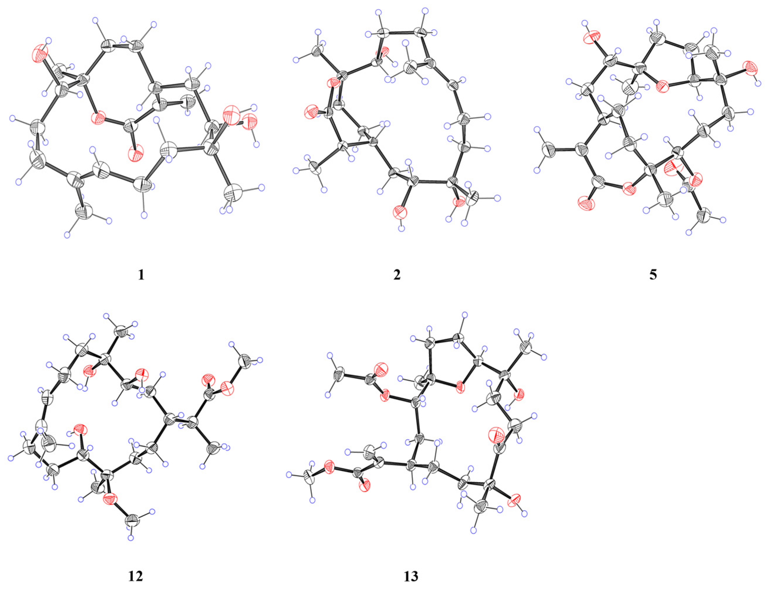 - Xie, W.K.; Gu, F.F.; Li, S.W.; Guo, Y.W.; Gong, Y.X.; Su, M.Z. Two New Cembranoids from the Soft Coral Sinularia sp. with Antioxidant Activity. Chem. Biodivers. 2025, 22, e202500141. [Google Scholar] [CrossRef]