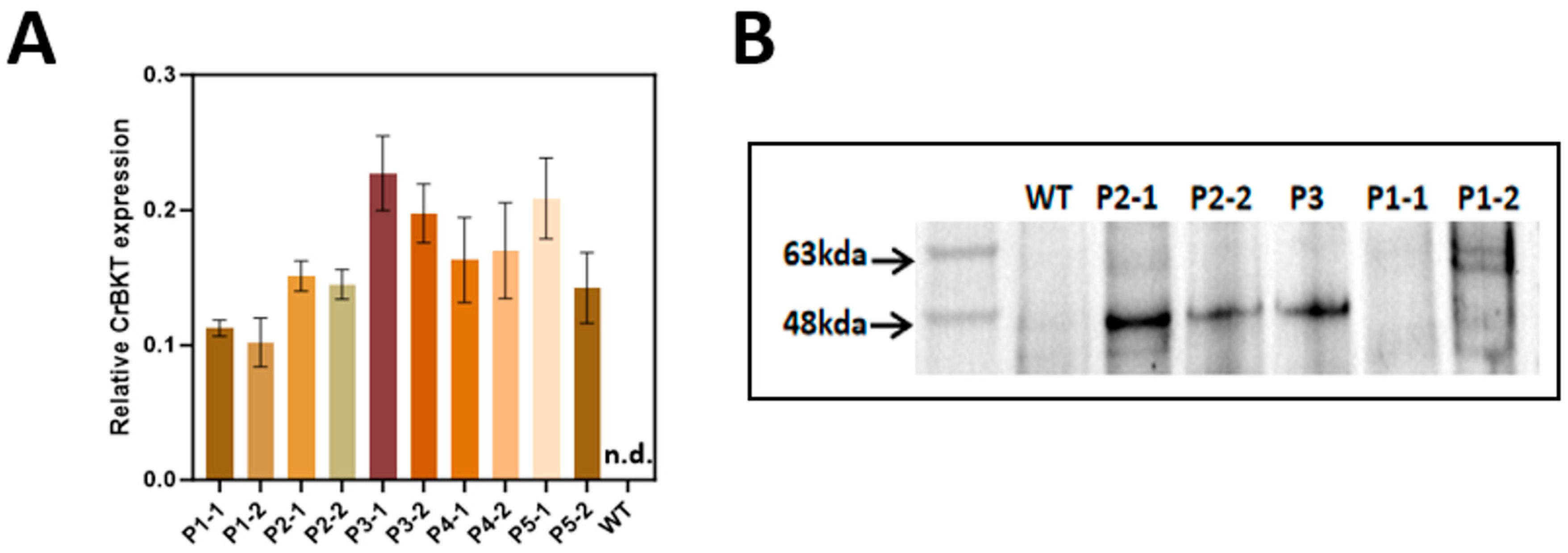 2.1. Rational Construct Design and Multi-Level Molecular Validation of Functional CrBKT