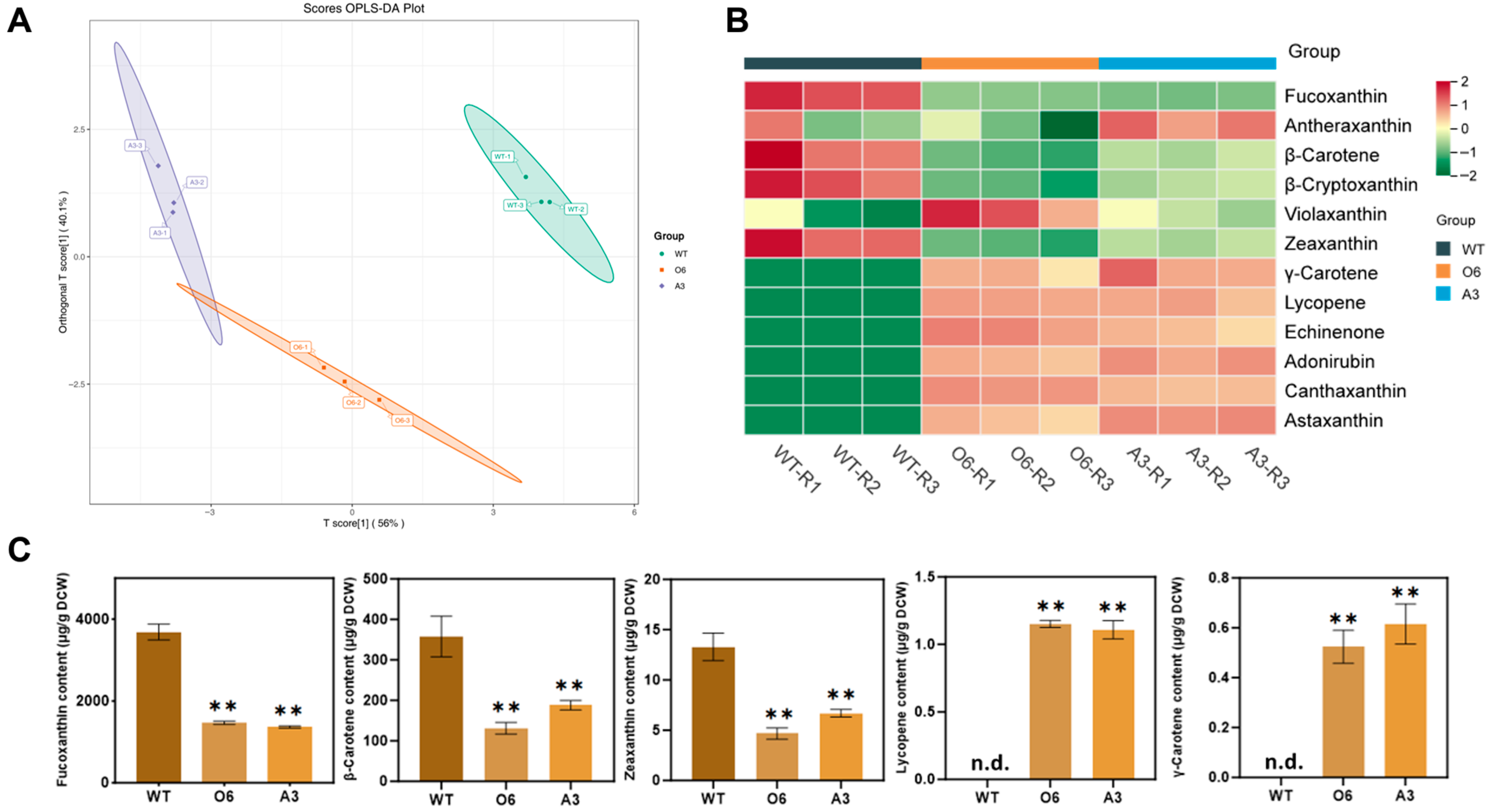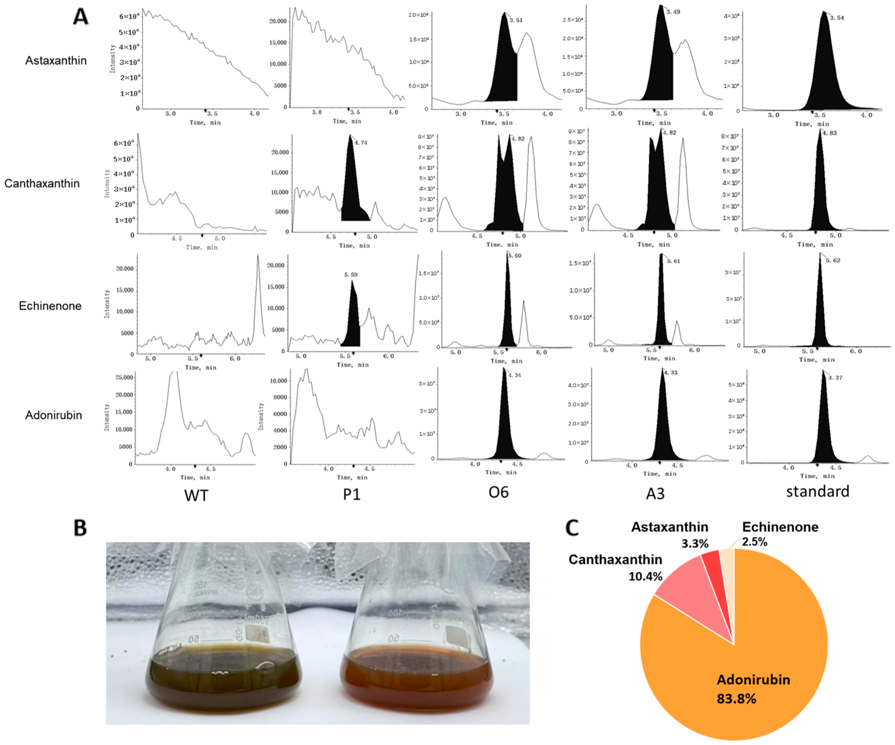 4.5. Chromatographic Mass Spectrometric Analysis of Carotenoids in Transgenic Algae