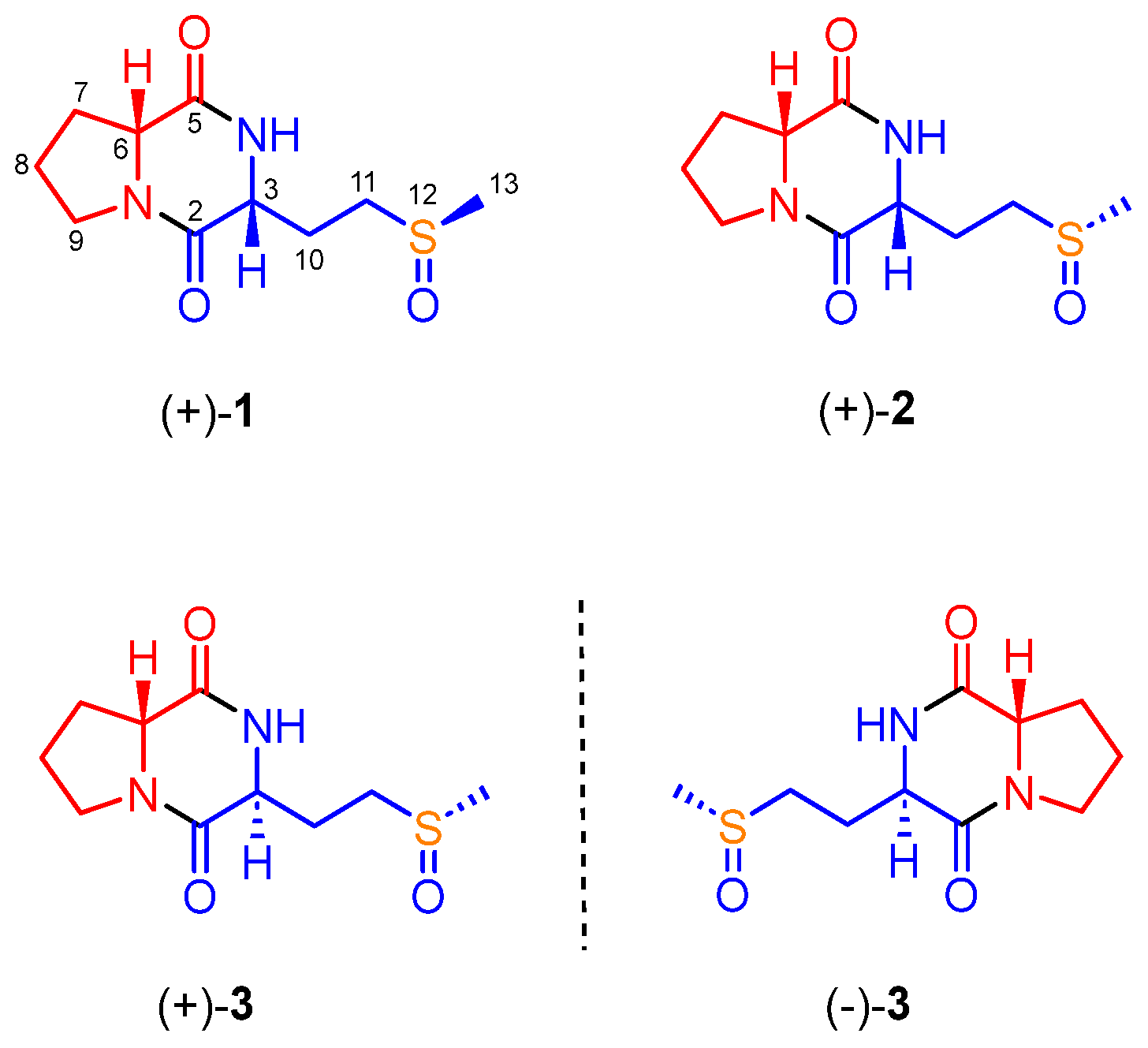 APA StyleLei, Y., Yang, Z., Li, D., Liao, X., Hettiarachchi, C., Zhao, B., & Xu, S. (2025). Four New Pairs of MetO-Containing Diketopiperazine Enantiomers: Isolation, Synthesis and Potential Anti-Parkinson’s Disease Activity. Marine Drugs, 23(12), 477. https://doi.org/10.3390/md23120477