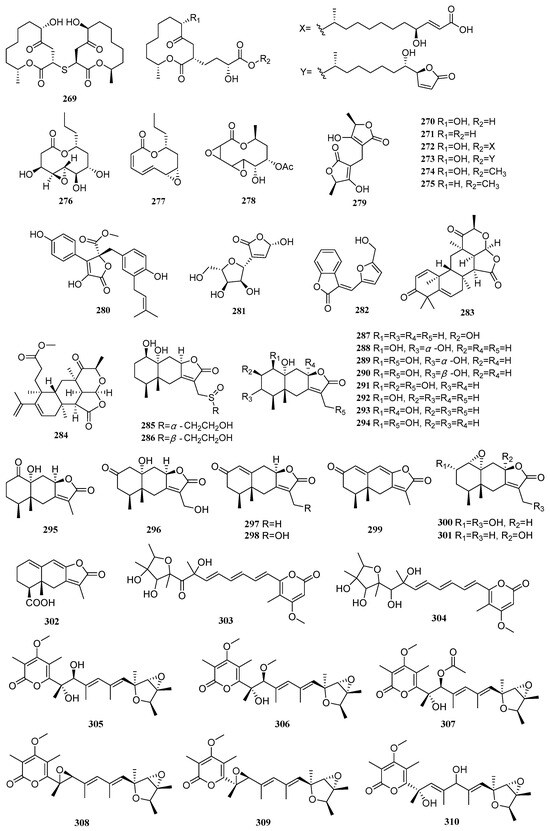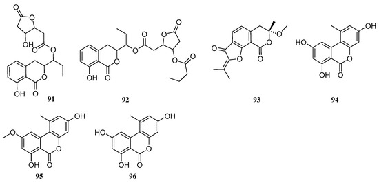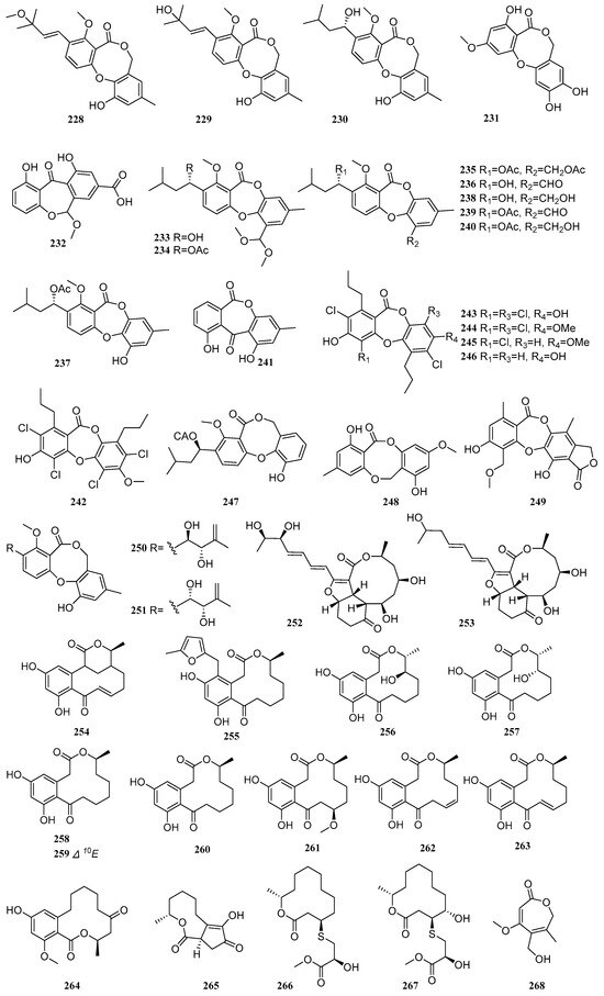 P. oryzae, causative agents of brown leaf spot disease and leaf blast disease, respectively, on rice plant var. KDML105, under greenhouse conditions. Chromatographic fractionation and purification of the extract led to the isolation of four previously described depsidones,