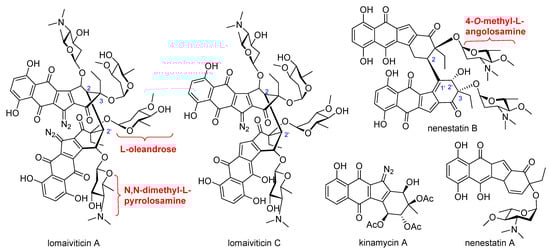- Woo, C.M.; Beizer, N.E.; Janso, J.E.; Herzon, S.B. Isolation of lomaiviticins C−E, transformation of lomaiviticin C to lomaiviticin A, complete structure elucidation of lomaiviticin A, and structure-activity analyses. J. Am. Chem. Soc. 2012, 134, 15285–15288. [Google Scholar] [CrossRef] [PubMed]