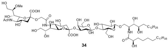 However, ET-743 (29) has been obtained by a short and straightforward semisynthetic process developed and patented by PharmaMar, starting from Cyanosafracin B, (33), produced by the fermentation of the bacterium Pseudomonas fluorescens [101,109]. Starting from Cyanosafracin B (33), ET-743 (29) was obtained on a multigram scale in a very short and direct route (19 steps only), in an economically cost-effective process with a 1.4% overall yield (Scheme 12). The chemical methodology developed in this semisynthesis has shown to be of great versatility accessing the other ecteinascidins through the N-demethylation of the fully protected intermediate leading to Ecteinascidin 729, ET-729, whose bridgehead amine allows nitrogen derivatives of the ecteinascidins and facilitates access to compounds difficult to obtain from the natural source.