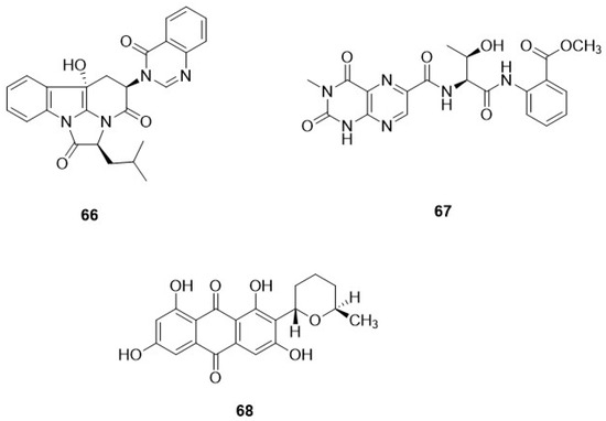 - Cueto, M.; Jensen, P.R.; Kauffman, C.; Fenical, W.; Lobkovsky, E.; Clardy, J. Pestalone, a New Antibiotic Produced by a Marine Fungus in Response to Bacterial Challenge. J. Nat. Prod. 2001, 64, 1444–1446. [Google Scholar] [CrossRef]