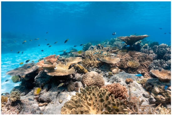 - Souter, D.; Planes, S.; Wicquart, J.; Logan, M.; Obura, D.; Staub, F. (Eds.) Status of Coral Reefs of the World: 2020; Global Coral Reef Monitoring Network (GCRMN) and International Coral Reef Initiative (ICRI): Canberra, Australia, 2020. [Google Scholar]