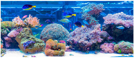 - Leger, J.S.; Violetta, G. Interaction Between Public and Private Aquaria. In Marine Ornamental Species Aquaculture; John Wiley & Sons, Ltd.: Chichester, UK, 2017; pp. 623–634. ISBN 9781119169147. [Google Scholar]