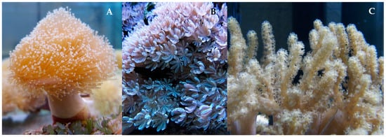 - Aratake, S.; Tomura, T.; Saitoh, S.; Yokokura, R.; Kawanishi, Y.; Shinjo, R.; Reimer, J.D.; Tanaka, J.; Maekawa, H. Soft Coral Sarcophyton (Cnidaria: Anthozoa: Octocorallia) Species Diversity and Chemotypes. PLoS ONE 2012, 7, e30410. [Google Scholar] [CrossRef]
