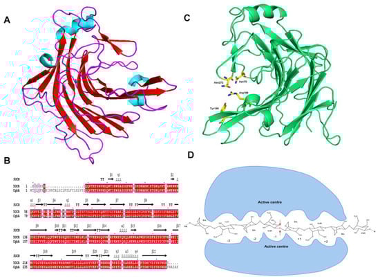 - Viborg, A.H.; Terrapon, N.; Lombard, V.; Michel, G.; Czjzek, M.; Henrissat, B.; Brumer, H. A subfamily roadmap of the evolutionarily diverse glycoside hydrolase family 16 (GH16). J. Biol. Chem. 2019, 294, 15973–15986. [Google Scholar] [CrossRef]
