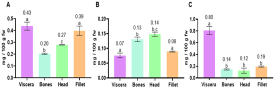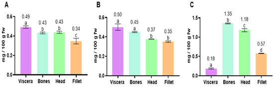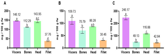 | Fatty Acids | Fillet | Head | Bones | Viscera | ||||