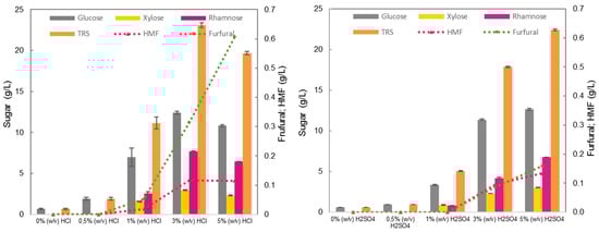 | Saccharification Treatment | Acid Concentration (% w/v) | ||||
