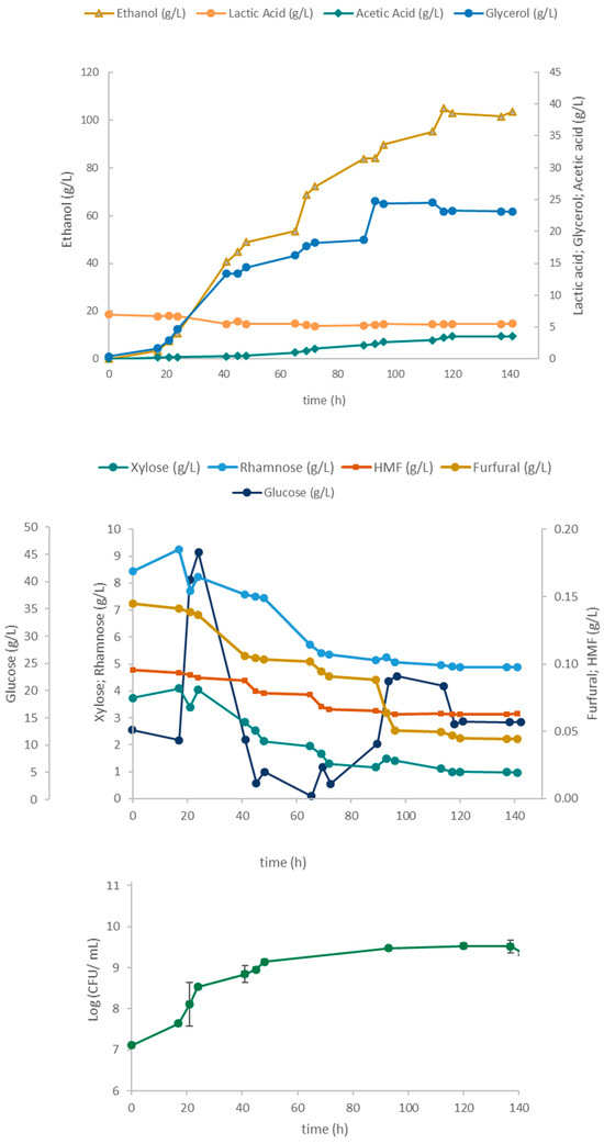 - Giacon, T.G.; de Gois e Cunha, G.C.; Eliodório, K.P.; Oliveira, R.P.d.S.; Basso, T.O. Homo- and Heterofermentative Lactobacilli Are Distinctly Affected by Furanic Compounds. Biotechnol. Lett. 2022, 44, 1431–1445. [Google Scholar] [CrossRef]