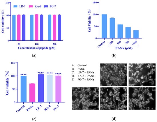 Cells grown in culture flasks underwent digestion to create a single-cell suspension that was then diluted with fresh medium before being transferred into six-well plates at a final concentration of 4 × 105/well (2 mL/well). Peptides at concentrations of 100 μM were introduced prior to adding PANa for a 4 h incubation. Following another 24 h culture period, cells were examined and photographed using an inverted microscope.