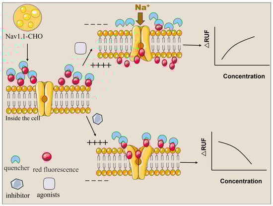 Schematic illustration of fluorescent biosensing approach for the rapid screening of agonists/inhibitors targeting hNav1.1.