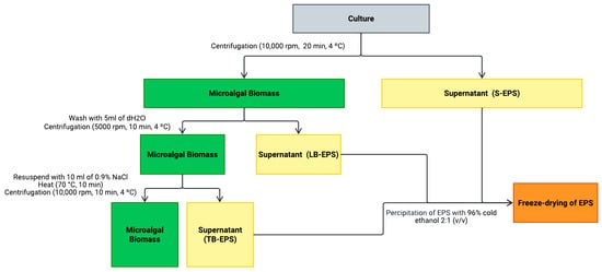 - Babiak, W.; Krzemińska, I. Extracellular Polymeric Substances (EPS) as Microalgal Bioproducts: A Review of Factors Affecting EPS Synthesis and Application in Flocculation Processes. Energies 2021, 14, 4007. [Google Scholar] [CrossRef]
