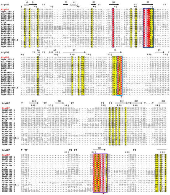 Figure 2. Multiple sequence alignments of AlgVR7 and related alginate lyases of strains.