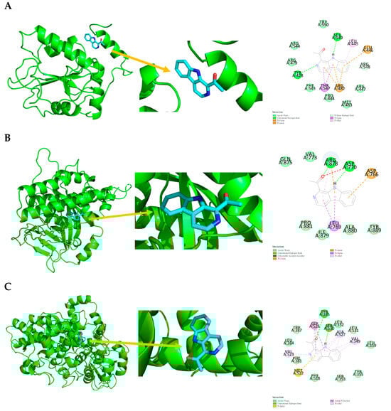 | Alkyl | TYR382, LEU398, ARG485, ARG488 | ILE706, TYR710, LEU769, VAL773, PRO881. | HIS90, LEU123, MET471, VAL523. |