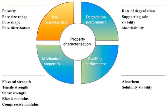 Another crucial component of bone healing materials is their swelling performance, which exerts a substantial influence on the utilization of these materials. The binding of collagen to different substances has a direct impact on the variation of its swelling characteristics. Xue et al. [] reported that the treatment of heterogeneous collagen membranes with DHT remarkably enhanced their stability and compressive strength when the membranes were in a swollen state. This performance improvement holds great promise for guiding bone regeneration. Valipour [] investigated the effect on the physicochemical properties by adding different volumes (0.5, 1.0, and 1.5 mL) of dialdehyde starch to a mixed hydrogel of fish-skin collagen and chitosan. The study revealed that the amount of dialdehyde starch significantly affected the swelling rate and biodegradability of the hydrogel. According to Zhang et al. [], cross-linked hydrogels generally expanded more quickly than non-cross-linked polymer membranes.